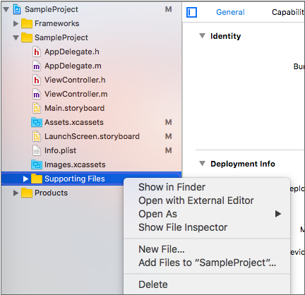 Xcodeプロジェクトを生成すると、デフォルトで生成されるAppDelegate.h、AppDelegate.m、main.mに対して、nexacro platform環境に合わせて編集します。