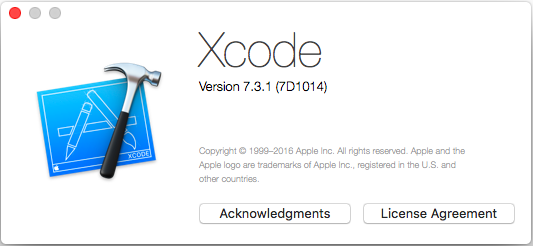 管理者ガイドではXcode7.3.1バージョンを基準に説明します。