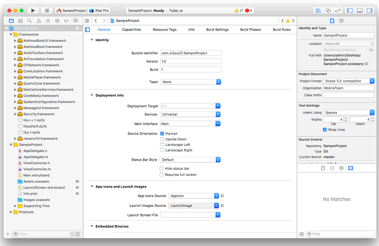 XcodeプロジェクトでのiOSアプリ開発およびビルド