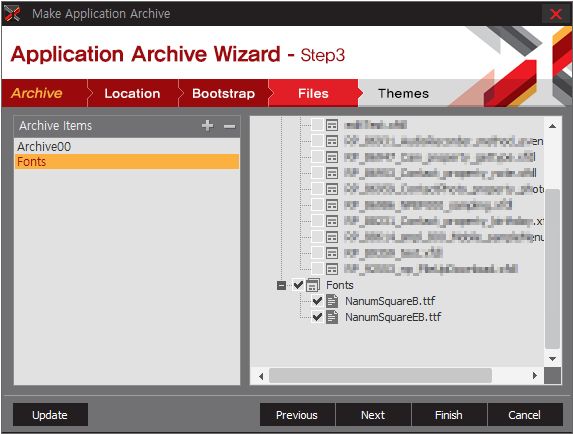 nexacro studioでアーカイブファイルの生成時にフォントファイルを含むように構成します。