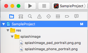 スプラッシュ画像を使用するために、プロジェクトにフォルダを作成し、画像を追加します。単純な画像であれば、解像度ごとに画像を生成せずに一つのサイズ(750px x1334px)で対応することができます。