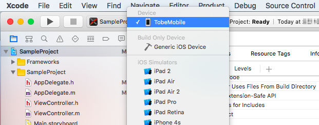 iOS端末をUSBでPCと接続して実機テストを行うか、もしくはXcodeのシミュレータを立ち上げてテストを行うことができます。実機テストを行う場合には、端末にプロファイルをインストールする必要があります。