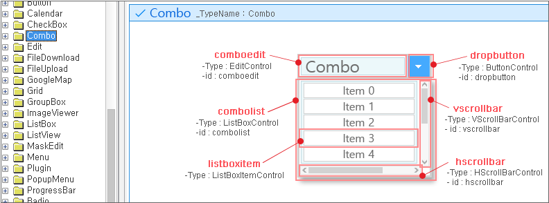 넥사크로에서 지원하는 컴포넌트, 컨트롤은 아래와 같습니다.