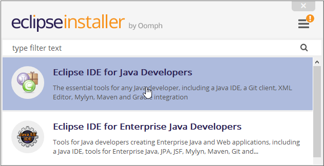 내려받은 설치 파일(eclipse-inst-win64.exe)을 실행해 이클립스를 설치합니다.