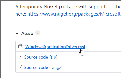 WinAppDriver 설치 파일(WindowsApplicationDriver.msi)을 내려받습니다.