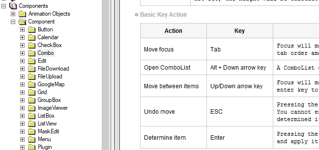 제품 도움말에서 컴포넌트의 "Basic Key Action" 항목을 참고해주세요.