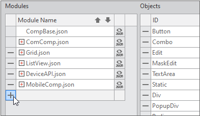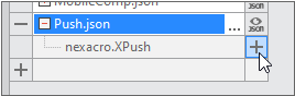Modules 목록에 Push.json 항목이 추가된 것을 확인하고 nexacro.XPush 항목 옆에 있는 [+] 버튼을 클릭해 XPush 오브젝트를 Objects 목록에 추가합니다.