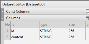 Dataset Editor에서 Dataset 오브젝트의 컬럼 속성을 아래와 같이 설정하고 Grid 컴포넌트에 바인딩합니다.