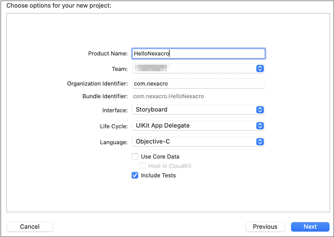 Xcodeにて、下記のような手順に応じてiOS用アプリプロジェクトを開発します。アプリプロジェクトを進行する前に、nexacro studioで作成されたアーカイブファイルは指定したパスに配置する必要があります。