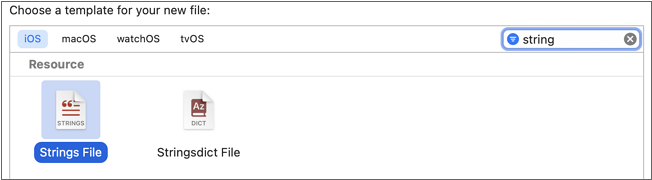 画面に表示されているテンプレートの中で、「Strings File」を選択します。