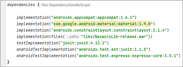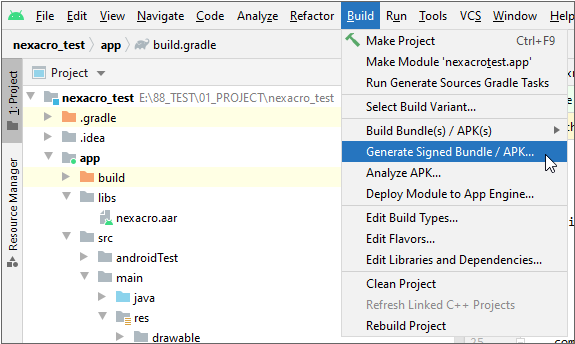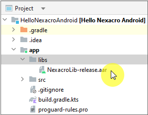 Copy the Nexacroib-release.aar file and the required aar files to the [Project path > app > libs] folder.