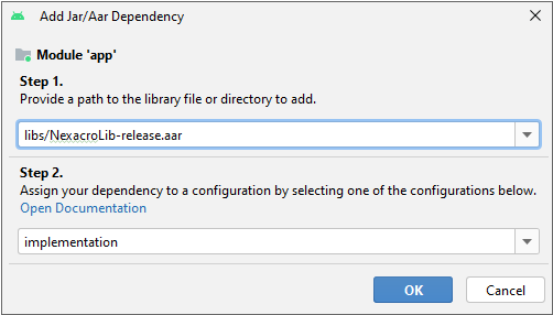NexacroLib-release.aar | [Project path]\app\libs\ | Required |