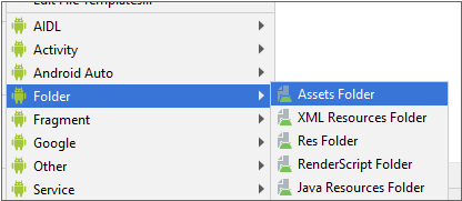 Right-click on app, the root folder of your project, and select [New > Folder > Assets Folder] from the context menu. Create the assets folder under the directory [project > app > src > main].