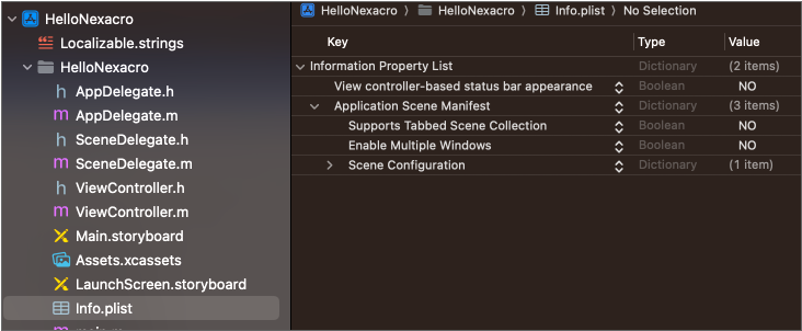 Info.plist 파일을 편집기로 열어 UIApplicationSceneManifest 키를 추가합니다.