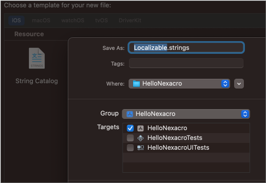 "Save As" 항목에 파일명이 'Localizable.strings'인지 확인합니다.