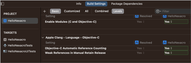 iOS 프로젝트에서 넥사크로에 최적화된 환경을 만들기 위해 추가로 제공되는 넥사크로 라이브러리 파일을 설정합니다.