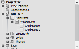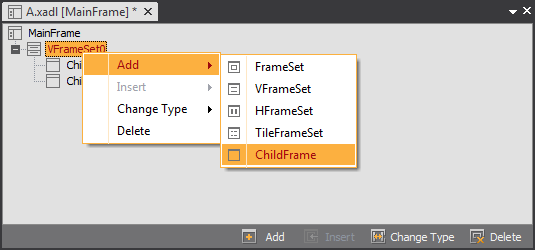 デフォルトで提供されるフレームはMainFrame、ChildFrameに分けられ、画面レイアウトによって、FrameSet、VFrameSet、HFrameSet、TileFrameSetを追加することができます。