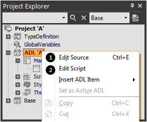 ADLでマウスの右側のボタンをクリックしてから“Edit Source”をクリックすると、ADLの内容を編集することができます。
