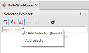 生成されたXCSSは空のファイルです。スタイル効果を設定するには、コンポーネントに該当するセレクタを追加する必要があります。XCSS Editorの左上からAdd Selector(Insert)ボタンをクリックして、新しいセレクタを追加します。