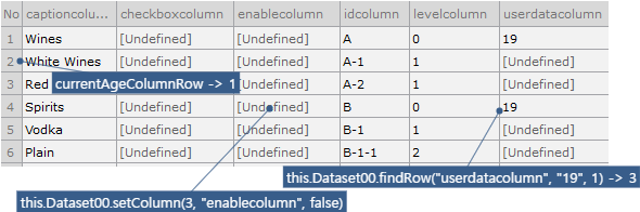 currentAgeColumnRow = this.datasetMenu.findRow("userdatacolumn", "19", currentAgeColumnRow); // -1 (If the Row value is 4,5, the userdatacolumn value is not found and -1 is returned.)