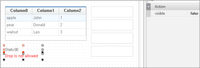 Binding is completed by dragging and dropping Dataset in the Invisible Objects area to the Grid component created on Form.