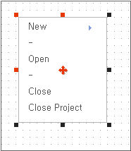 Select the PopupMenu item from the toolbar, drag and drop it onto the form to create it. A blank white box is displayed on the screen.