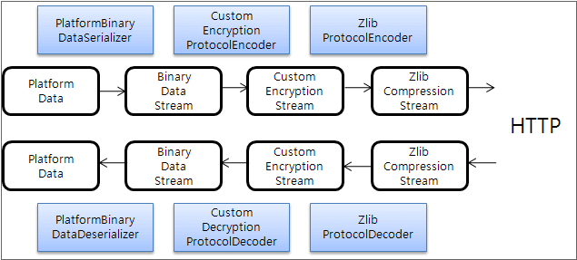 下記はPlatformDataをBinary送受信形式で暗号化や圧縮を行う場合の内部フローの例です。