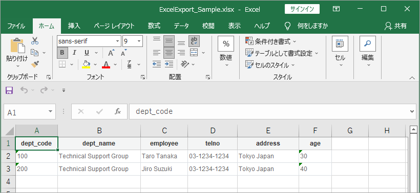 エクスポートの処理過程および実行用のサンプルについて説明します。