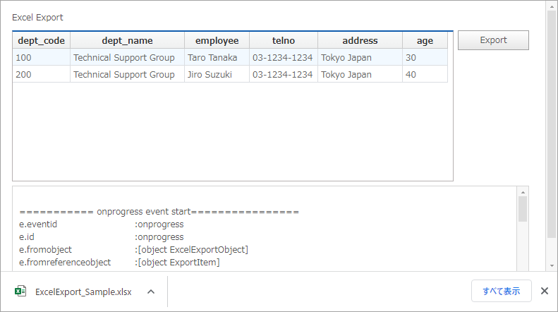 }ExcelExportObjectのイベント