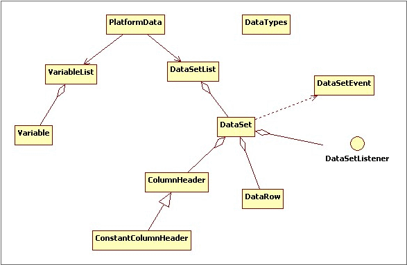 VariableListとDataSetListを持っているPlatformDataはデータ構造の最上位であり、データ移動とデータ送受信の基本単位として使用されます。