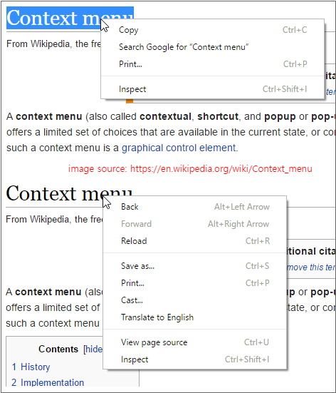 웹브라우저나 개발도구 등에서 특정 기능이 필요할 때 처리할 수 있도록 PopupMenu 컴포넌트를 사용합니다. 컨텍스트 메뉴, 팝업 메뉴, 팝업 등의 이름으로 불리기도 합니다. 사용자의 현재 상태에 따라 메뉴 항목을 다르게 표기할 수 있습니다. 예를 들어 웹브라우저에서 특정 문자열을 선택하고 메뉴를 호출하면 복사, 검색, 인쇄 등의 기능을 보여주고 그렇지 않은 경우에는 페이지 이동, 소스보기 등의 기능을 표시합니다.