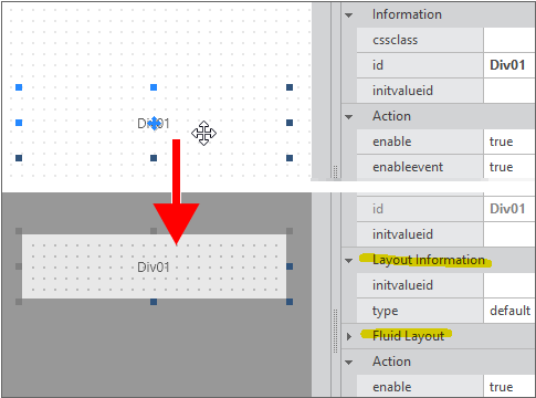 편집 상태에서는 Layout Information 항목과 Fluid Layout 항목이 추가로 속성창에 표시됩니다.