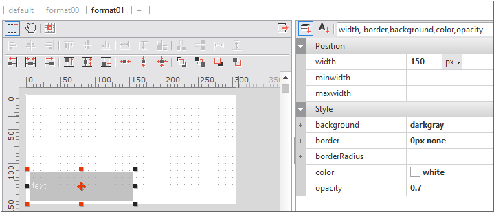[Cell] 항목을 선택해서 셀을 추가하고 text 속성값과 Position 관련 속성을 수정합니다. 셀 편집이 끝나면 Enter 키를 입력하거나 [Exit Editor] 메뉴를 선택해 기본 편집 모드로 전환합니다.