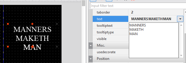 In the [Design] mode, you can place or select the component and specify the property value. The modified property value is immediately reflected and can be checked on the [Design] mode screen.