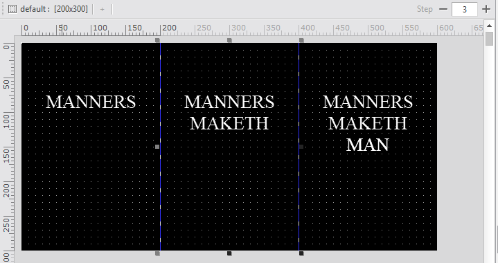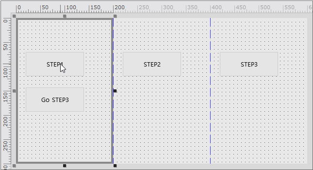 In Nexacro Studio, if the stepcount property value of the Form object is set to 2 or more, the Form width is increased by the specified value. For example, if the width property value of the Form object is set to 200 and the stepcount property value is set to 3, then the width as much as 600 is displayed. Also, every 200 pixels is marked with a blue dotted line. Although the actual screen width is 200, it can show 600 contents because it turns the screen by step unit.
