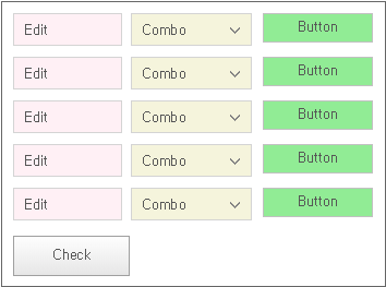 If you click the [Check] button, then the background colors of the Edit, Combo, and Button components are modified.