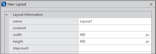 When you click the [Add Layout] item, the [New Layout] window is displayed where you can enter layout information. In the example, enter only the width, height values.