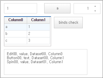 Run it with QuickView (Ctrl + F6) and click the [binds check] button component to check if the Bind item list is displayed in the TextArea component.