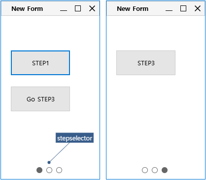 StepControl(stepselector) cannot be used independently. It is applied only when the screen is divided by specifying the stepcount property value in the Form object.
