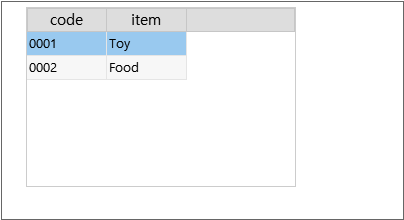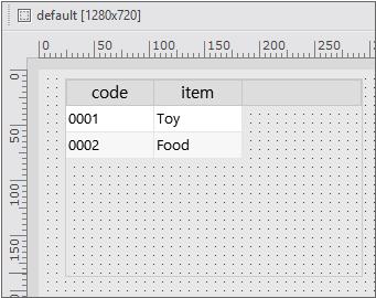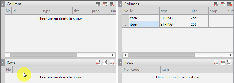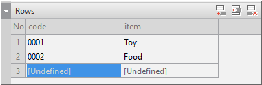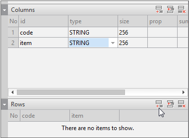 Add 2 columns and change the id values to "code", "item". When you add the column, you can see that the added column information is displayed in the [Rows] item below.