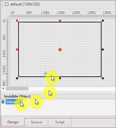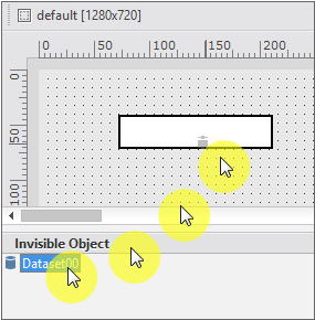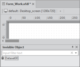 Click the mouse anywhere on the design screen. Since the Dataset object is not displayed on the screen, the location where it is placed has no meaning. When you click the mouse, the Dataset object is added to the [Invisible Object] area.