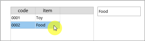 When binding the Dataset component to the Edit component, the displayed data differs according to the row information. This time, the same Dataset object is bound to the Grid component and the Edit component. Each time the row of the Grid component is selected, the value displayed in the Edit component differs here.