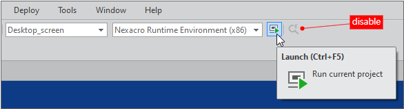 If there is no open Form in the edit window of Nexacro Studio, then the [QuickView] menu or toolbar is not enabled.