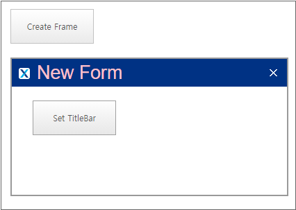 If you click the "Create Frame" button, the frame is created under the Button component. If you click the "Set TitleBar" button in the created window, then you can change some properties of the title bar area.