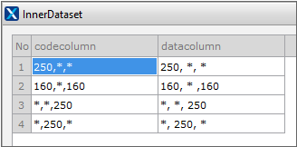 Place the Button component and the Radio component as shown in the example screen. The item value of the Radio component is used when specifying the separatesize property value. The innerdataset value is as follows.