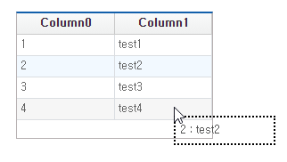 strVal += " : " + this.Dataset00.getColumn(e.row, "Column1");
