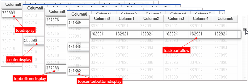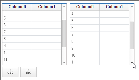 When clicking the button below the Grid component, moving it with the mouse wheel motion, or grabbing and dragging the TrackBar, the right Grid component moves one row at a time.