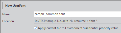 userfontid 속성에 생성한 UserFont 파일을 바로 적용하려면 아래 체크박스를 체크 상태로 변경합니다.
