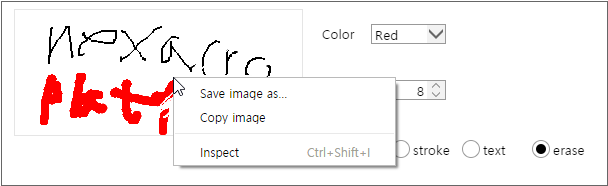 그리기와 지우기 두 가지 기본 기능을 제공하며 Text를 추가할 수 있습니다. 그리기 작업 시에는 브러시의 색상, 크기, 모양 등을 설정할 수 있습니다. 이번 예제에서는 간단한 옵션을 추가해봅니다.