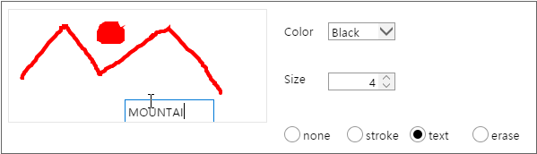 네 가지 옵션 중 하나를 선택할 수 있습니다. default 값은 "stroke"입니다. "text"를 선택한 경우에는 선택한 지점에 문자열을 추가할 수 있습니다. 문자열은 입력이 완료되면 이미지로 변환되며 수정할 수 없습니다.
